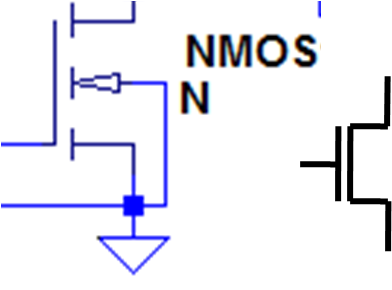 Logikschaltung: NFETs im Schaltplan unten, verbunden mit GND, VSS, 0V.