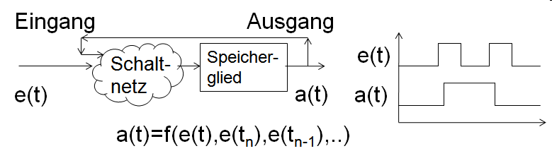 Zustandstabelle, Schaltnetz, Schaltwerk, Speicher, Inverter, Latch, D-Flip-Flop, Synchrone Schaltung,