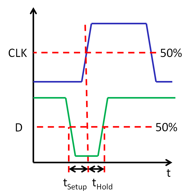 ![]() Ein Dreick am Eingang des Symbols bezeichnet eine Flankensteuerung. Setup und Hold Zeiten