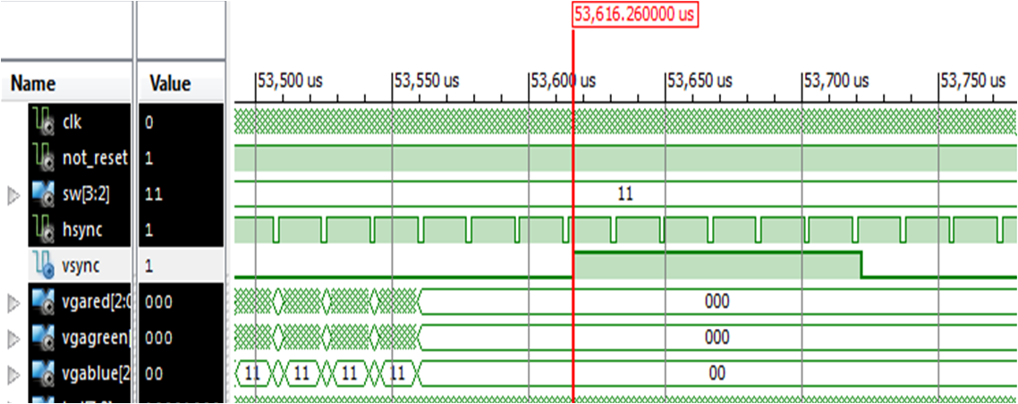 Vergößert man das Simulationsbild um das VSYNC Signal bekommt man folgendes Bild.