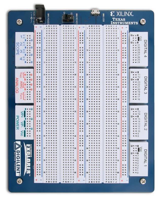 Der Electronic Explorer ist ein komplettes Labor, das im Praktikum verwendet wird.