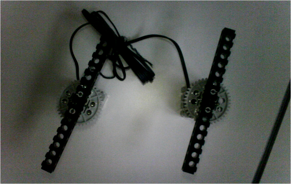 Gezeigt sind zwei LEGO-Motoren die mit einem Kabel direkt verbunden sind.