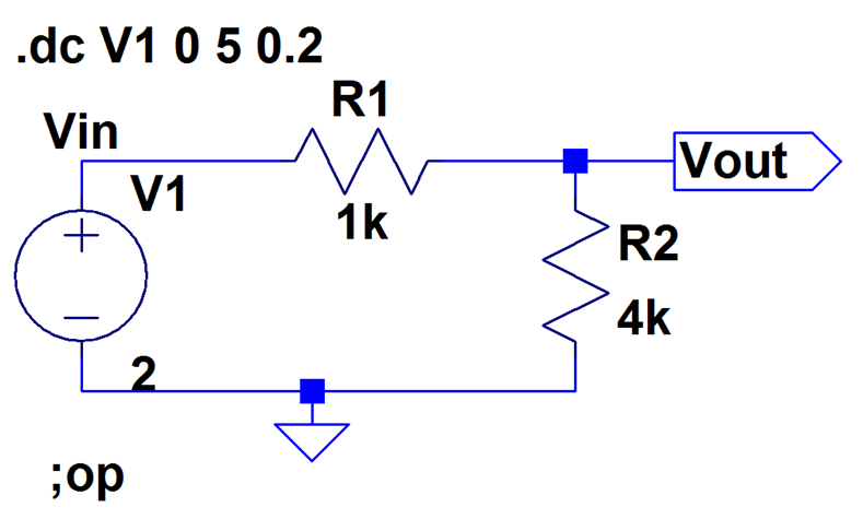 * C:\Program Files (x86)\LTC\LTspiceIV\Draft3.asc V1 N001 0 PWL(0 2 1m 2 2m 3 3m 1 4m 3 6m 2) R2 Vout N001 10 R3 Vout 0 20 .dc V1 0 2 0.1 .end Zeichnen Sie den Schaltkreis und die Spannung Vout. |