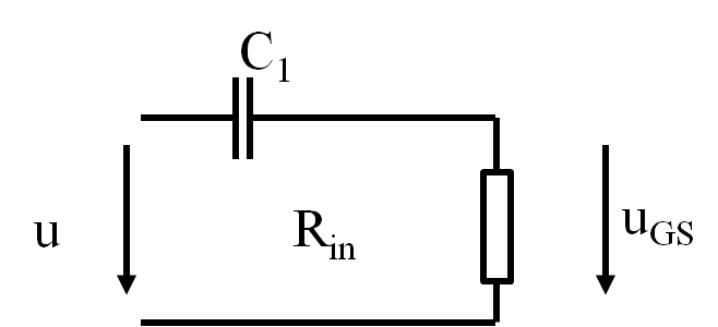 R1,R2: Gate Source Spannung \( U_{GS} = V_{DD} \cdot \frac{R_2}{R_1 + R_2} \) |