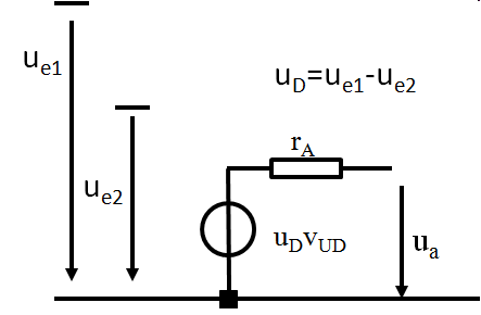 ue2: negativer Eingang uD: Differenzspannung vUD: Differenzspannungsverstärkung |