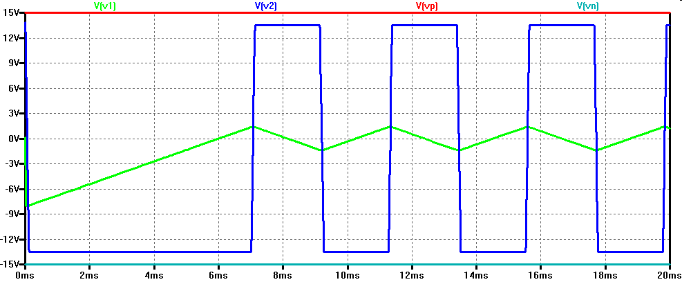 \( U_{eE} = - U_{eA} = \frac{R_2}{R_3} U_B \) \( f = \frac{1}{2 \cdot T_1} = \frac{U_{amax}}{2 \cdot C_1 R_1 \left( U_{eE} - U_{eA} \right)} = \frac{U_B \cdot R_3}{2 \cdot C_1 R_1 R_2 \left( U_{B} + U_{B} \right)} \) \( f = \frac{R_3}{4 \cdot C_1 \cdot R_1 \cdot R_2} =\frac{10 k\Omega}{4 \cdot 10 \mu F \cdot 1 k\Omega \cdot 1 k\Omega} \) \( f = \frac{1}{4 ms} = 250 Hz \) |