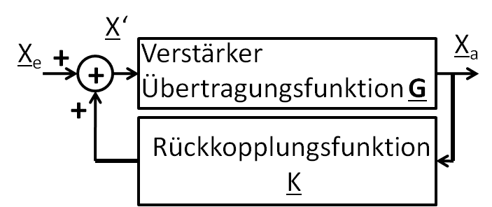 ![]() \( \underline{X}_a = \underline{G} \left( \underline{X}_e + \underline{K} \cdot \underline{X}_a \right) \) \( \underline{G'} = \frac{\underline{X}_a}{\underline{X}_e} = \frac{\underline{G}}{1 - \underline{K} \cdot \underline{G}} = \frac{\underline{G}}{\underline{g}} \) |