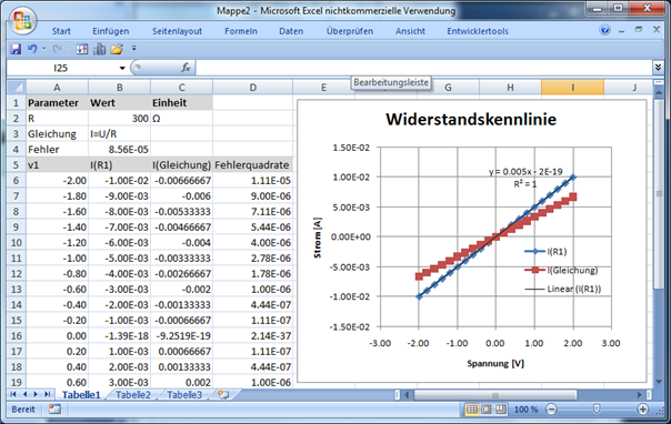 indem Sie den neuen Widerstandswert immer wieder in die Zelle B2 kopieren.