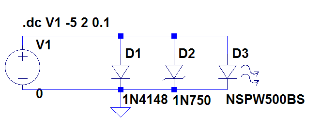 Abb:.1: LTSPICE Schaltplan zur Messung der Diodenkennlinie.