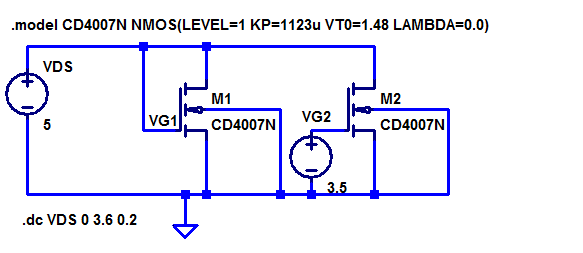 Abb.1: LTSPICE Schaltplan zur Messung der Kennlinie eines MOSFETs.