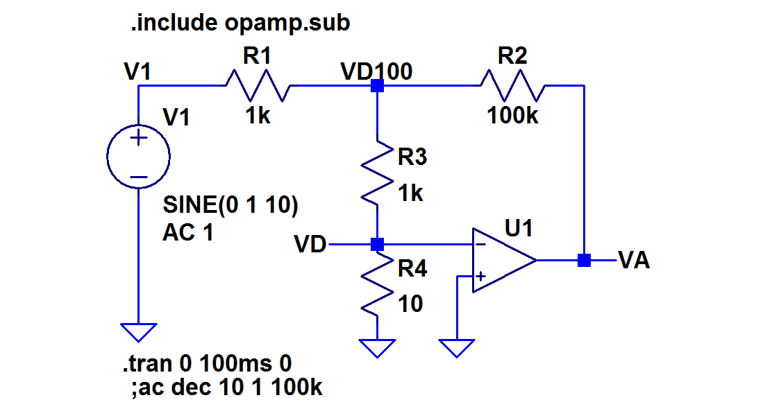 Analysieren sie die Datei opamp.sub .