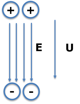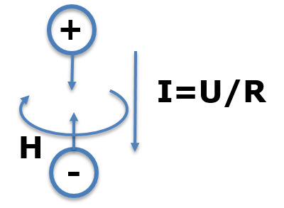 Die Spannung bestimmt die Bewegungsrichtung und die bewegte Ladung bestimmt den Strom.