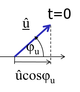 Spannung in der komplexen Ebene. u(t) = û cos(ω t + φu) + j û sin(ω t + φu) Eulersche Gleichung \( e^{j \phi} = cos \phi + j sin\phi \) Komplexe Spannung und komplexer Strom |
