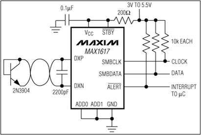 \( I_{D1} =100 \mu A \) ,   \( I_{D2} =10 \mu A \) \( I_{D} = I_S \left( e^{\frac{qU}{kT}}-1\right) \approx I_S e^{\frac{qU}{kT}} \) \( U = \frac{kT}{q} ln \left( \frac{I_D}{I_S} \right) \) \( V_{PTAT} = U_{D1}-U_{D2}=\frac{kT}{q} ln \left( \frac{I_{D1}}{I_{D2}} \right) \) \( V_{PTAT} = \frac{195 K \cdot 8.62 \cdot 10^{-5} eV/K 2.3}{e} = 38.9mV \) \( \frac{\Delta V_{PTAT}}{\Delta T} = \frac{k}{q} ln \left( \frac{I_{D1}}{I_{D2}} \right) = 0.2 mV/K \) |