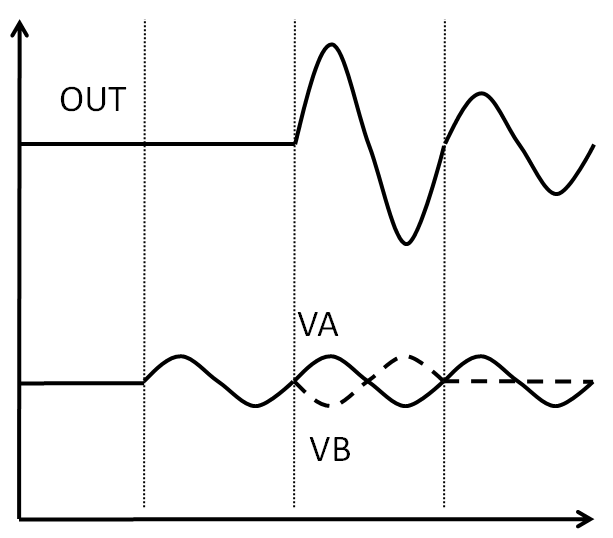 Störsignale auf beiden Eingängen A und B erscheinen nicht am Ausgang und werden unterdrückt.
