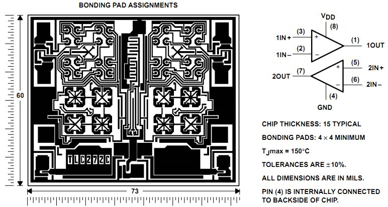 Der Chip ist 1.524 mm x 1.8542 mm (60 mil x 73 mil) gross.
