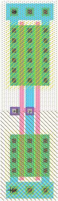 Ist der Hintergrund punktiert entsteht ein PFET, ist der Hintergrund liniert ein NFET.