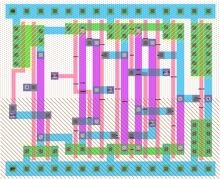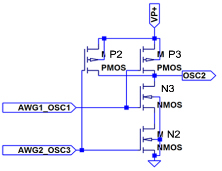 • Logikschaltung: PFETs im Schaltplan oben, verbunden mit VDD