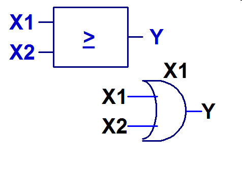 ODER: Immer wenn Eingang X1 oder Eingang X2 '1' ist ergibt sich am Ausgang eine '1'.