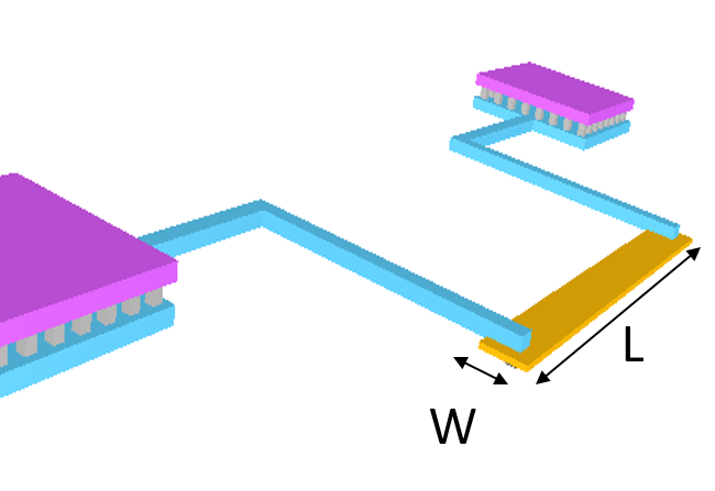 Im unteren Bild ist diese Struktur mit einer Weite W und einer Länge L