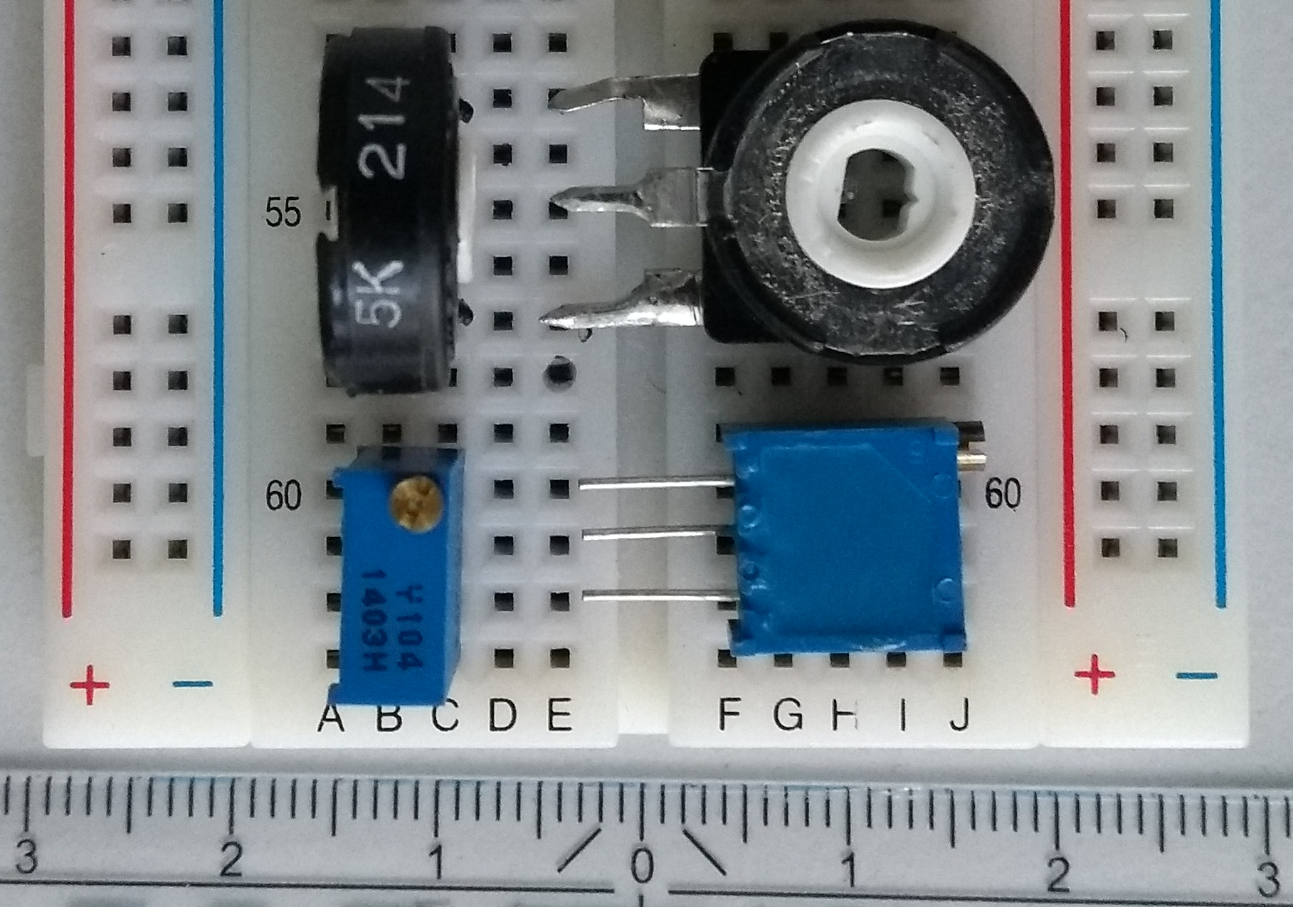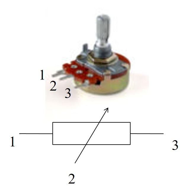 Je nach Stellung kann man am Mittelabgriff einen Teil des Widerstandes
