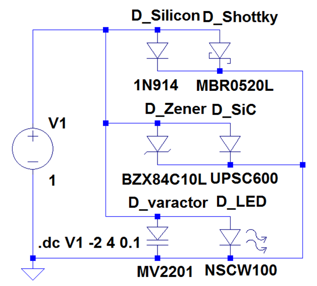 Hier wird ein Modell einer Diode des Typs Dx und 1N914 dargestellt.
