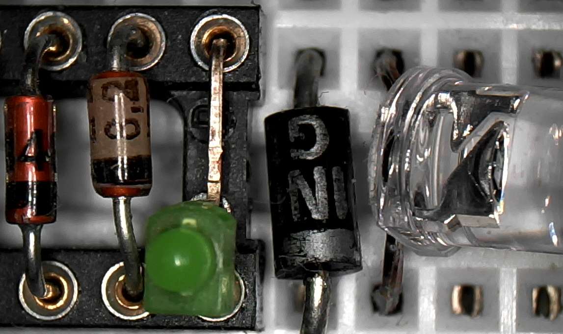 Die meisten Dioden haben eine Flussspannung um die 0.7 V. Nur die LED hat eine Flusspannung
