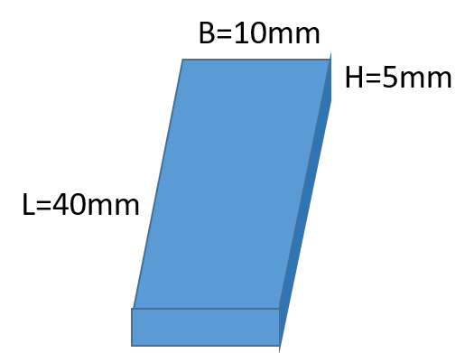 L = 40 mm und B= 10 mm und einer Höhe H=5 mm gefüllt.