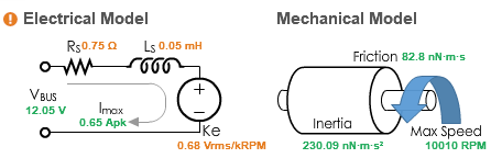 Jede Motorphase hat ein R{Rs}, L und eine gesteuerten Spannungsquelle (Back EMF).