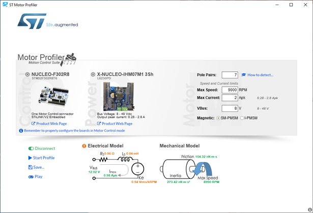 - Poolpaarzahl, maximale Drehzahl, maximale Betriebsspannung, maximaler Strom