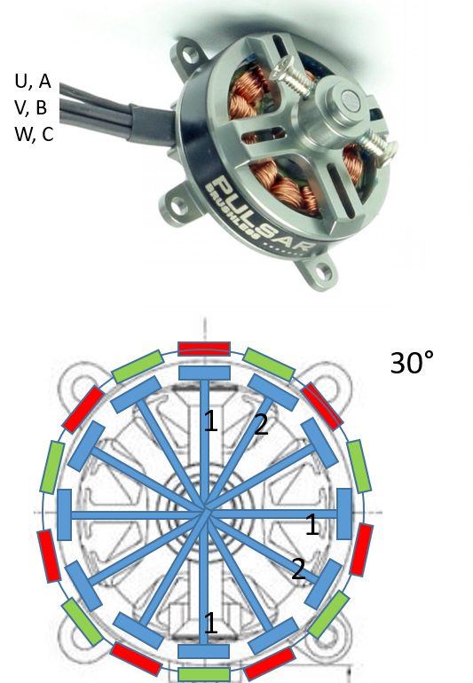 - Poolpaare: 14 Magnete, 12 Spulen, 7 Poolpaare
