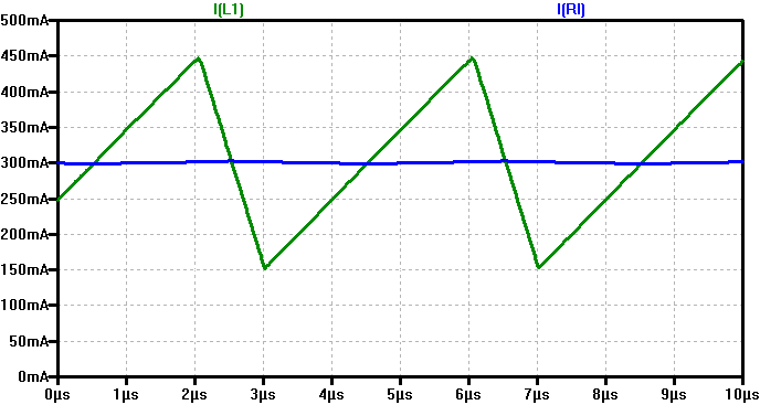 Die Last benötigt einen Strom von 300 mA. Der Spulenminimalstrom soll mindestens