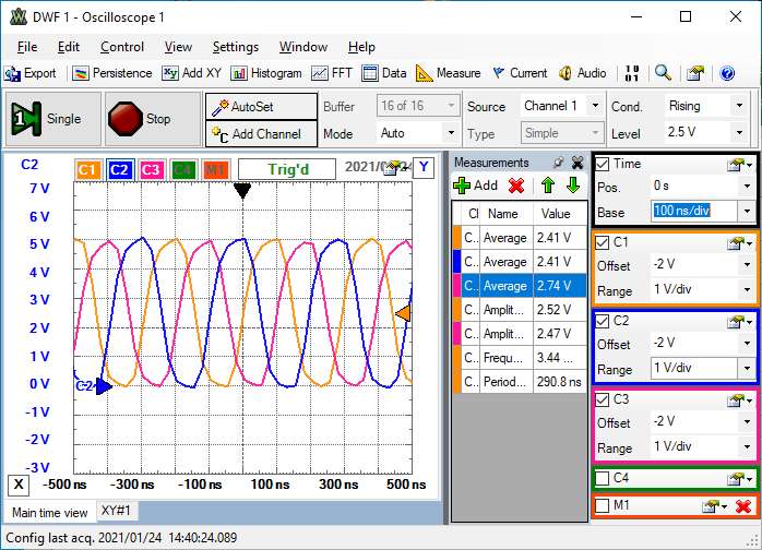 Die Frequenz ist im Vergleich zum Breadboard erhöht.