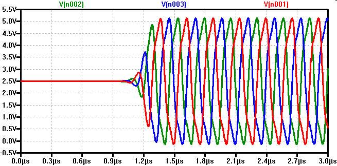 man den LTSPICE Schaltplan und eine Simulation für einen Ringoszillator.