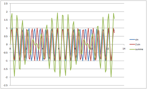 \( u(t) = \hat{u} cos ( \omega t + \phi_u ) \) |     \( u(t) = \hat{u}_1 cos ( \omega t + \phi_{u1} ) + \hat{u}_2 cos ( \omega t + \phi_{u2} ) \) |