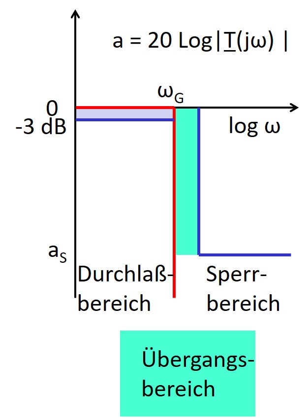 die Begriffe 3-dB-Grenzfrequenz, Durchlass- und Sperrbereich erläutern.