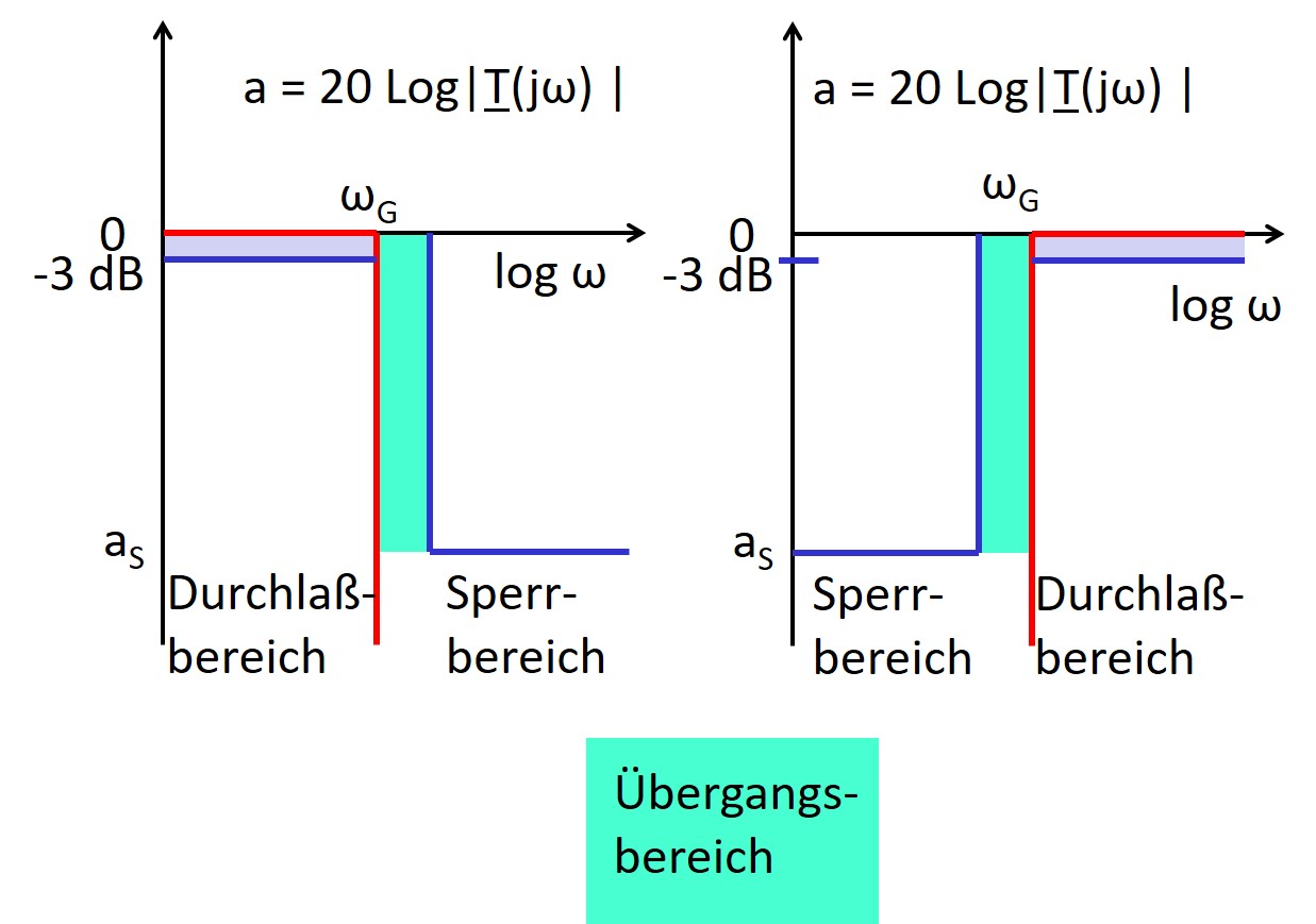 die Forderungen an die Übertragungsfunktionen realer Filter und die Lage