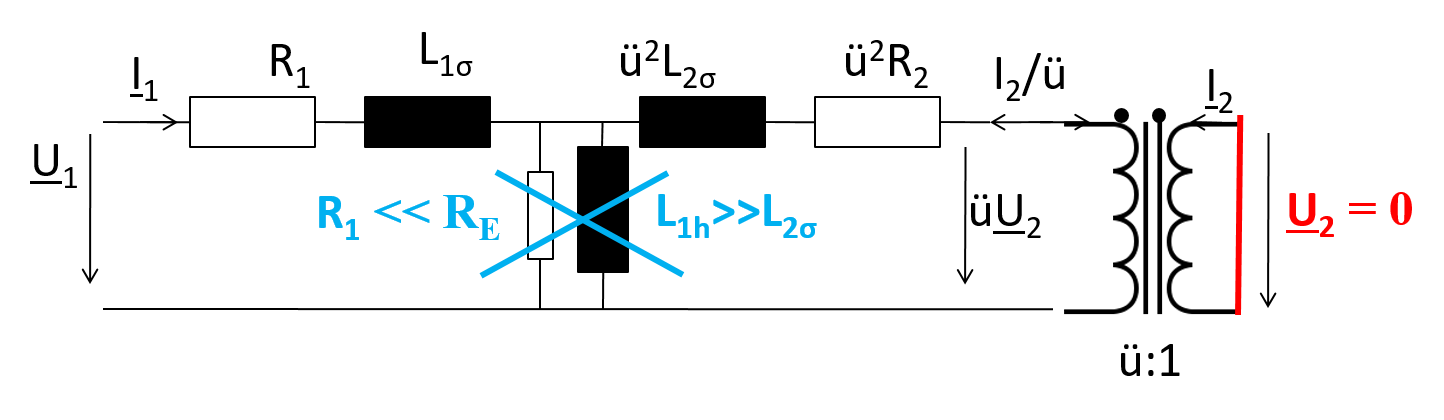 Annahme: \( R_1 \lt \lt R'_E \), \( R'_2 \lt \lt R'_E\), \(L_\sigma \lt \lt M' \)