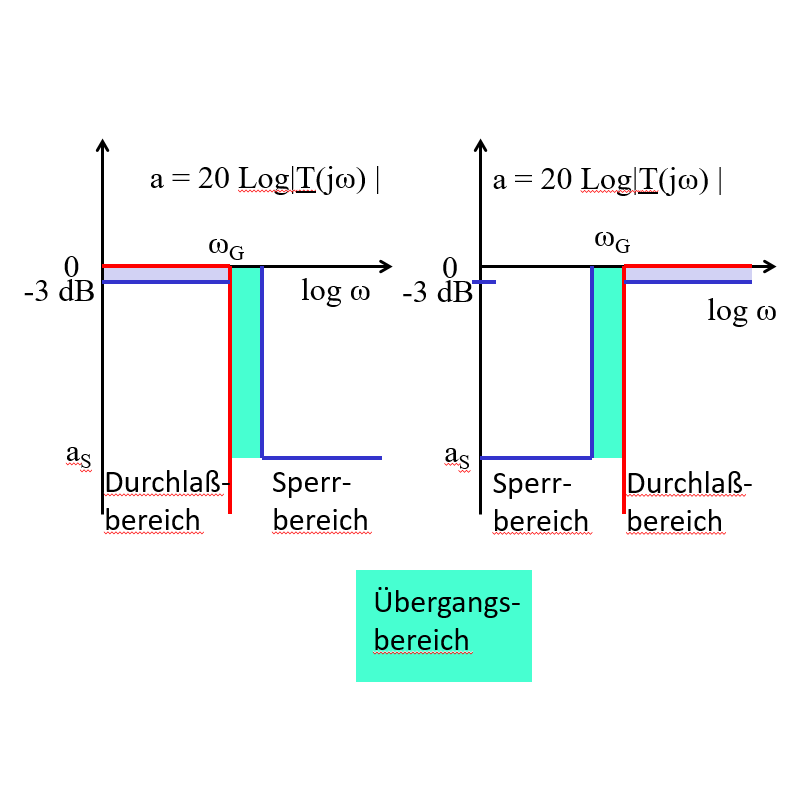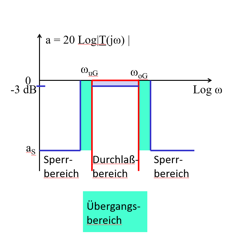 Das Maß Dezibel: \( A(j \omega ) = 20 log | \underline{T} (j\omega)| \)