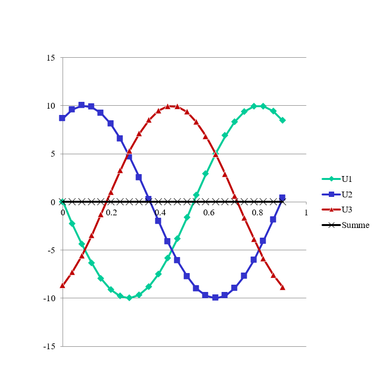 Aussenleiterspannung: \( \underline{U}_{12} = \sqrt{3} U \underline{/30°} \)