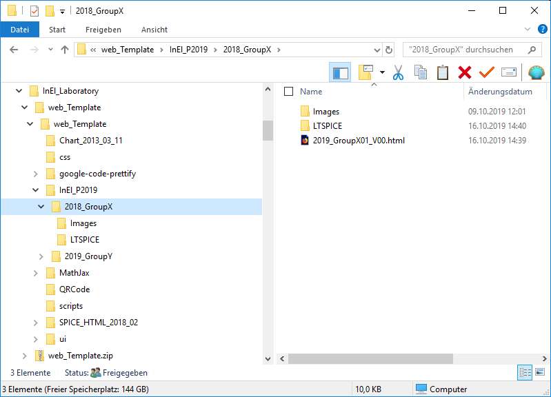 Go to the unzipped web_Template directory. Change the name of the group directory. <Year>_Group<A..Z> Do not use special characters in directory and file names. Change the name of the html file. <Year>_Group<A..Z>00_V00.html" Open the file in the browser and in Notepad++. |