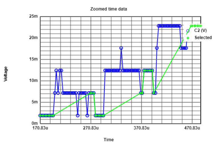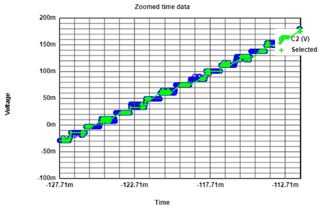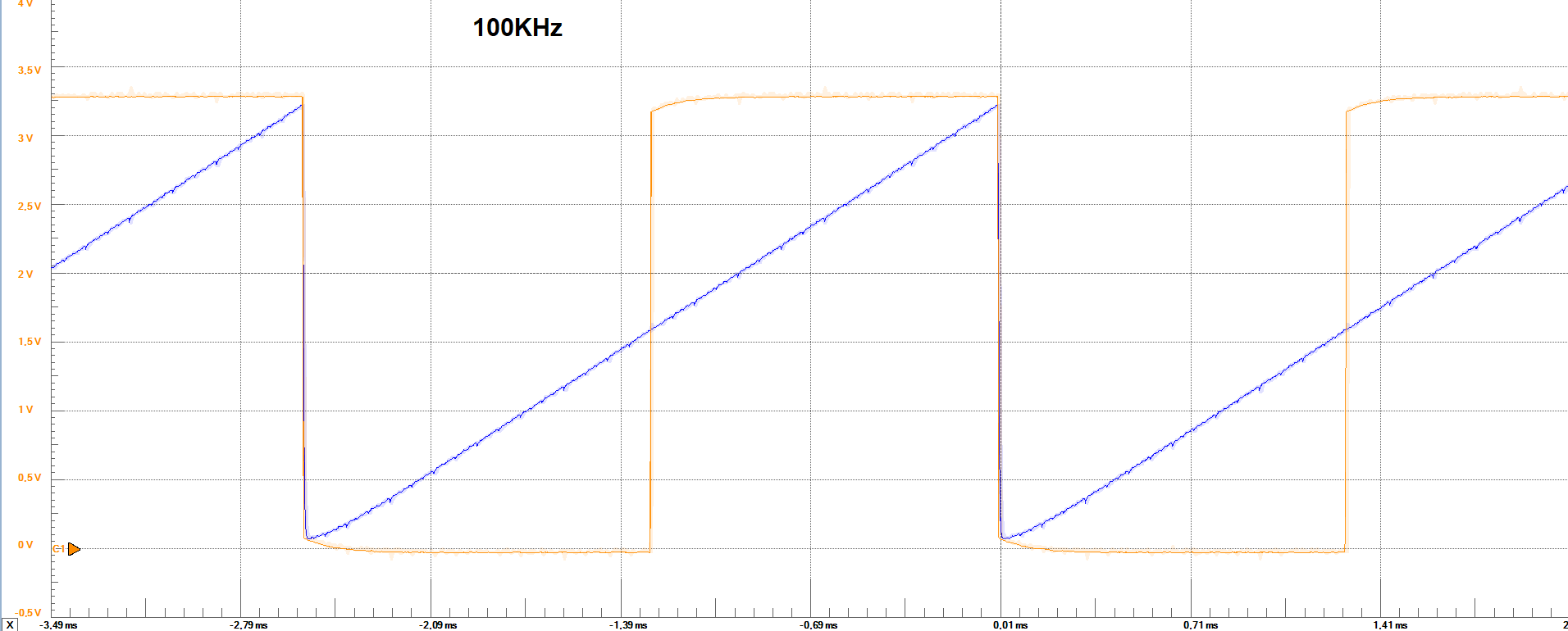 Net step is to measure the DNL and INL of the ramp output. however this is not going to be done for 100KHz frequency as the circuit is not reaching a steady-state,