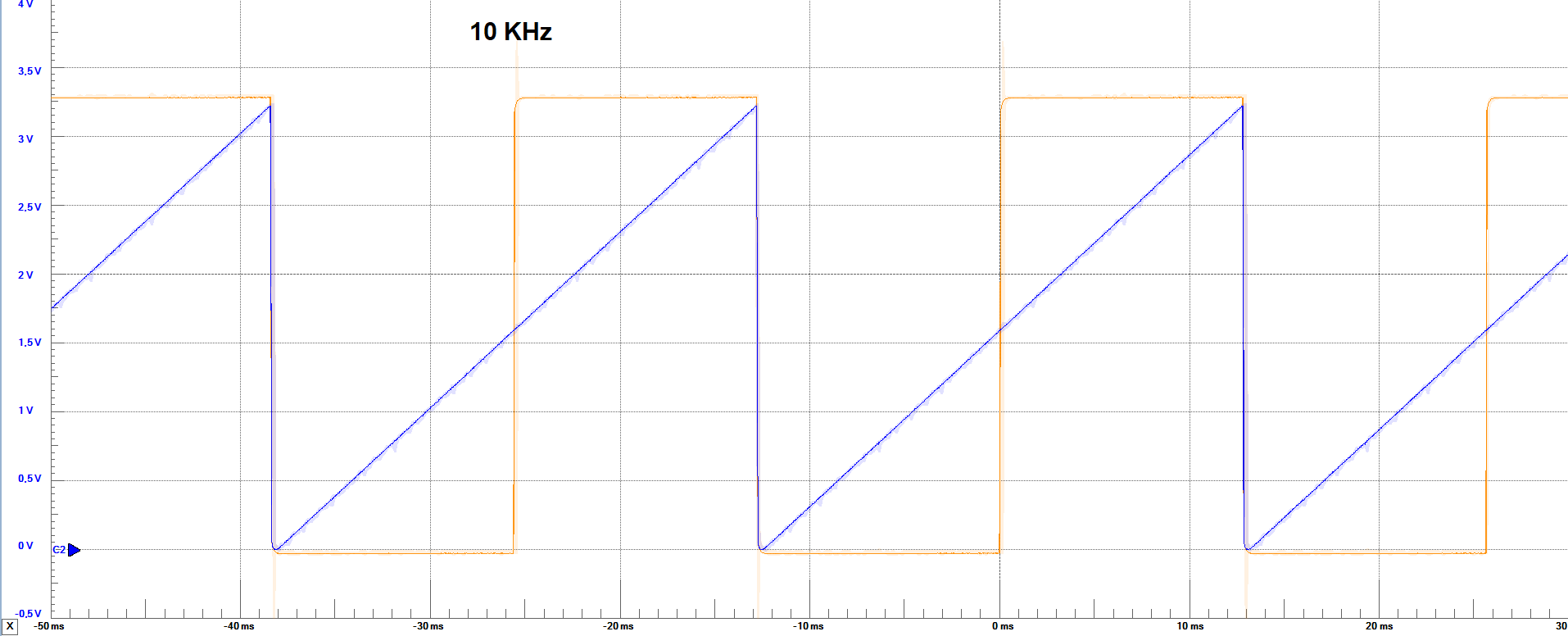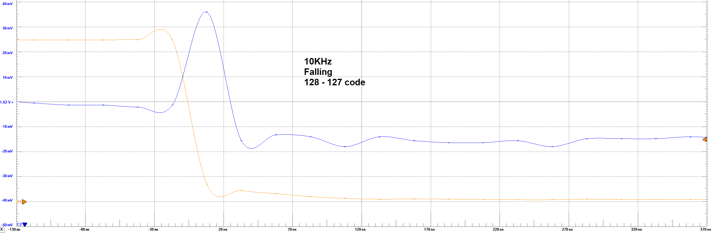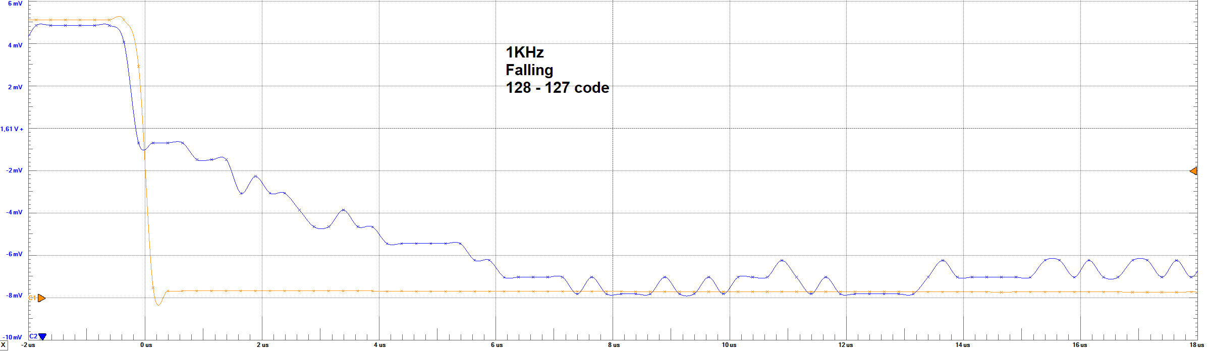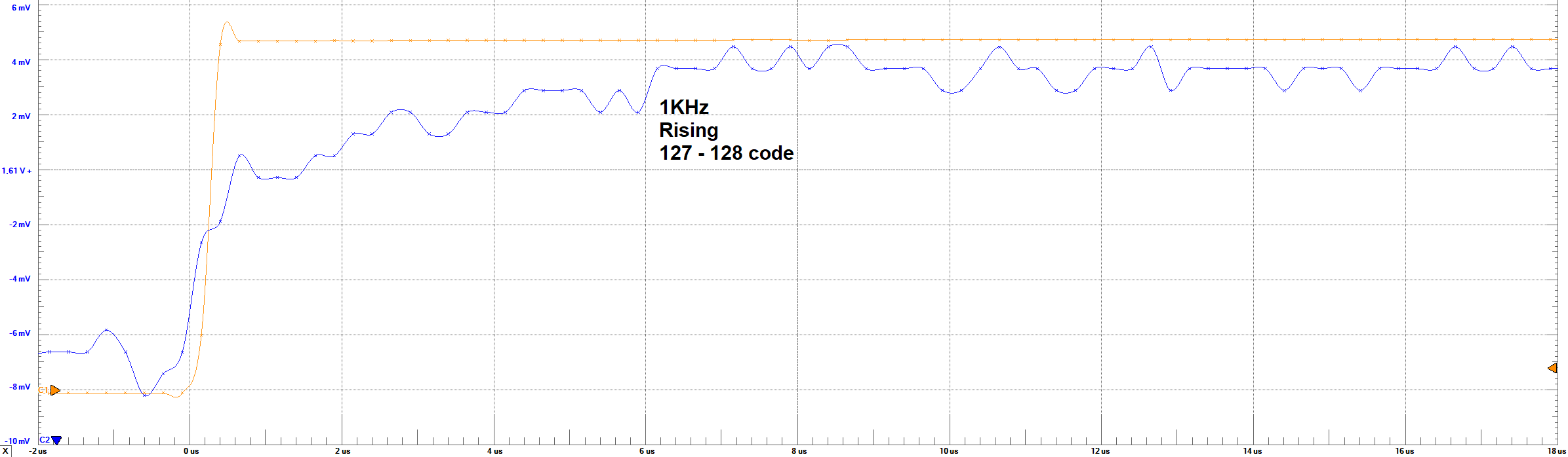 deformed the ramp at low codes. Perhaps that was happening in this case, but was not observable. The subsequent step was to decrease the frequency parameter (for example: 1KHz).