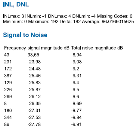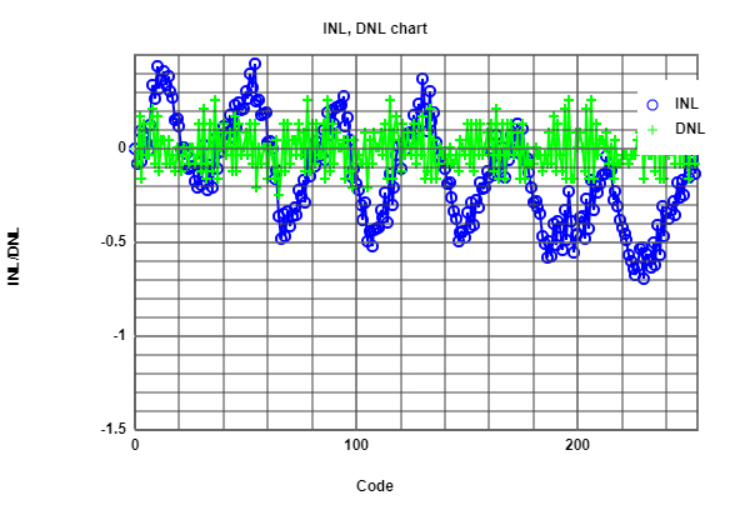 From that tool, we can obtain (with apropiated selection of settings) the DNL and INL graphics.