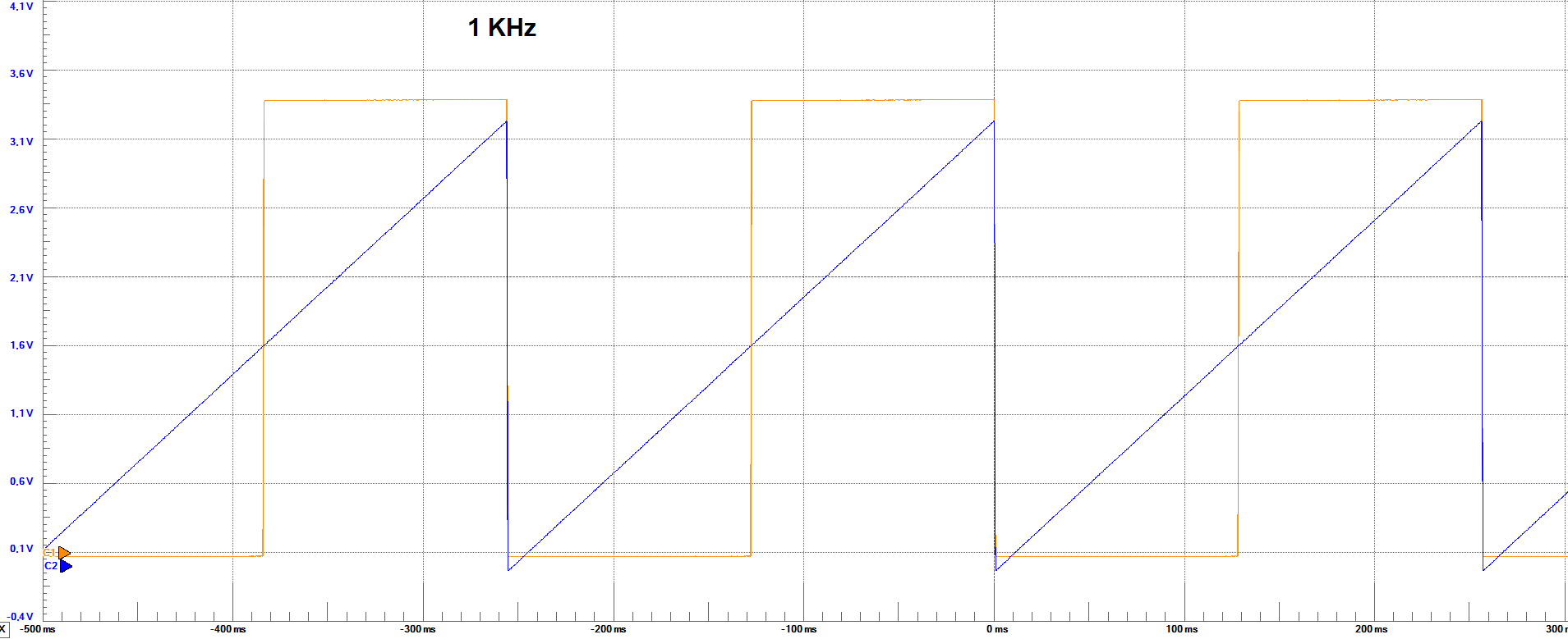 This was the same data used for the 1KHz analysis. As it can be seen, the wrong filtering of the data, specially on the edges of the rampwave,