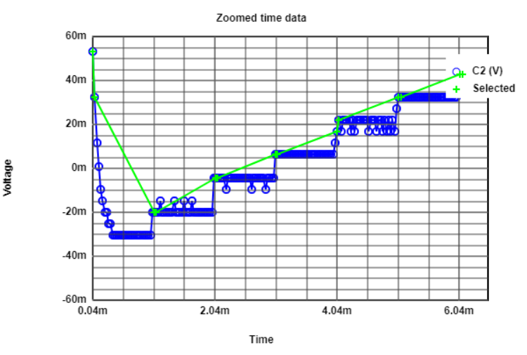 samples, but not considerable to damage the performance. The zoom window show also that the lowest codes have negative values, which mean that the minimum voltage is not 0,