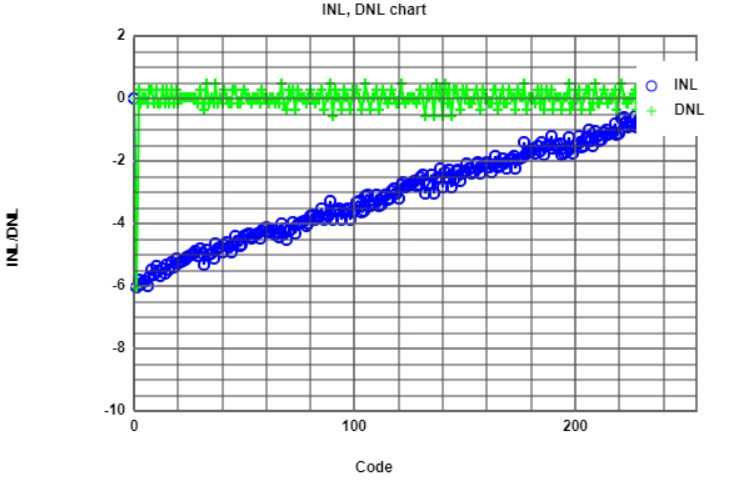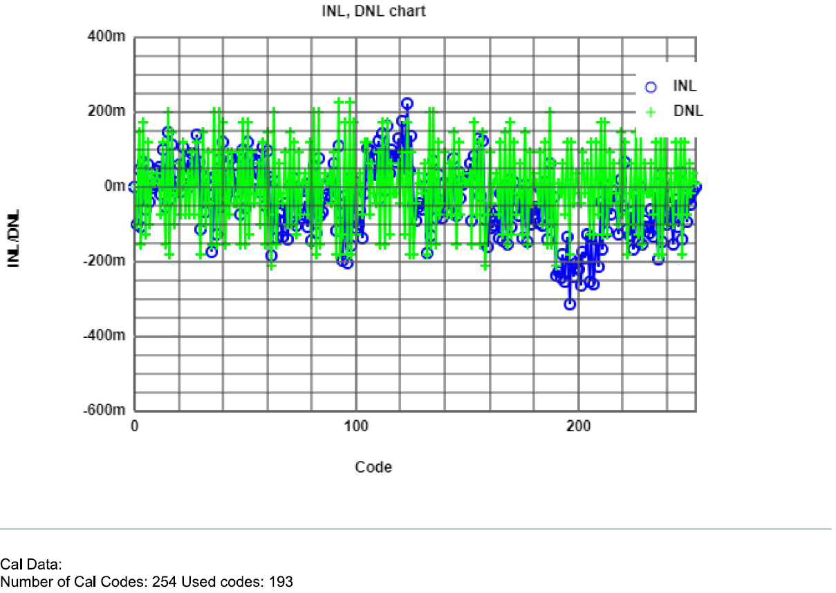 It can be seen that the DNL and INL error magnitude is within +/- 0.5. Using the tool to obtain the calibration codes, it gave