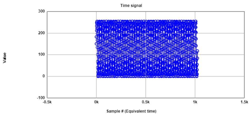 For the following example, a sinewave with 11cycles was introduced to the circuit and the output was measured. The data was converted into integers, so the