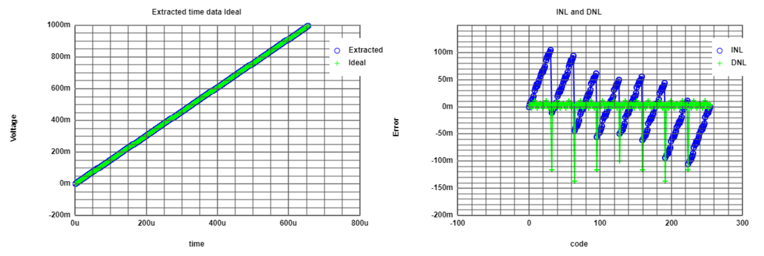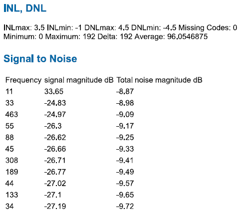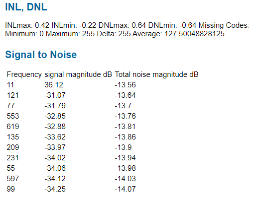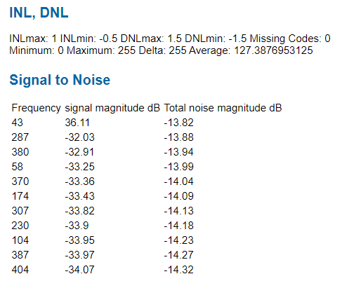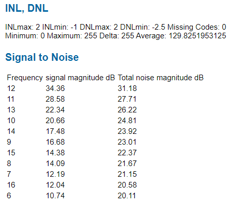 The following image shows the DNL and INL error for the histogram analysis. As the