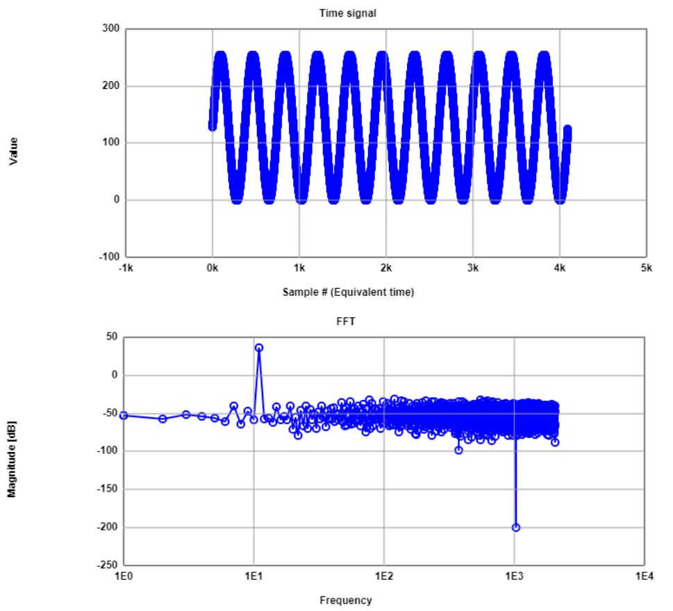 the FFT was 4096. The amplitude of the voltage is 0.5 V, Offset 0.5 V, 11 periods.
